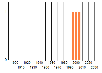 Het aantal atlasblokken (5x5 km) waarin de soort is gemeld binnen een periode van vijf jaar (vanaf 1980) of twintig jaar. Niet gecorrigeerd voor waarnemersinspanning en het aantal doorgegeven waarnemingen kan sterk variëren per periode, dus een trend in verspreiding kan hier niet direct uit worden afgelezen. Het opgegeven jaartal is het eerste jaar van de periode. Bron: gevalideerde waarnemingen uit de NDFF.