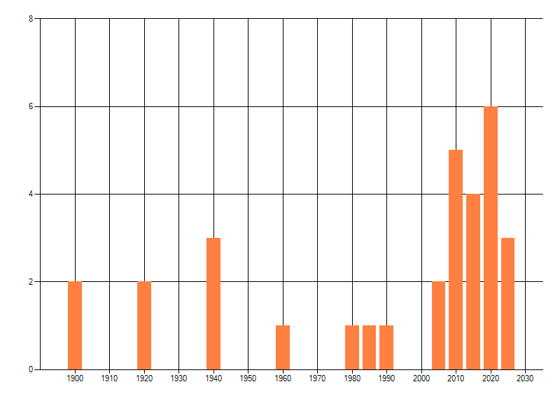 dus een trend in verspreiding kan hier niet direct uit worden afgelezen. Het opgegeven jaartal is het eerste jaar van de