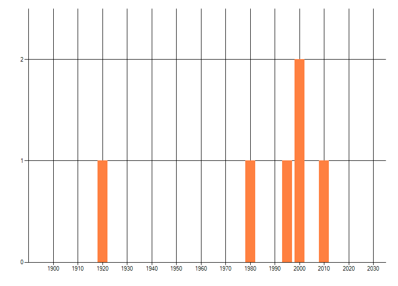 Het aantal atlasblokken (5x5 km) waarin de soort is gemeld binnen een periode van vijf jaar (vanaf 1980) of twintig jaar. Niet gecorrigeerd voor waarnemersinspanning en het aantal doorgegeven waarnemingen kan sterk variëren per periode, dus een trend in verspreiding kan hier niet direct uit worden afgelezen. Het opgegeven jaartal is het eerste jaar van de periode. Bron: gevalideerde waarnemingen uit de NDFF.