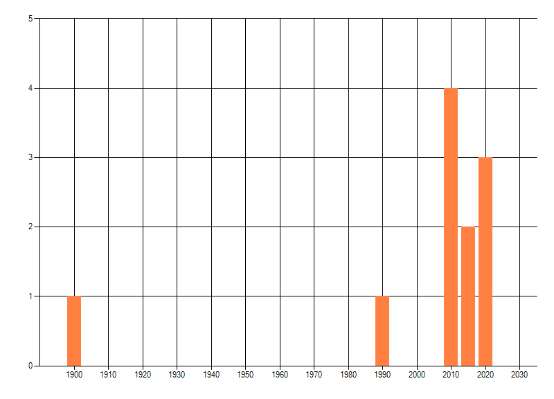 Het aantal atlasblokken (5x5 km) waarin de soort is gemeld binnen een periode van vijf jaar (vanaf 1980) of twintig jaar. Niet gecorrigeerd voor waarnemersinspanning en het aantal doorgegeven waarnemingen kan sterk variëren per periode, dus een trend in verspreiding kan hier niet direct uit worden afgelezen. Het opgegeven jaartal is het eerste jaar van de periode. Bron: gevalideerde waarnemingen uit de NDFF.