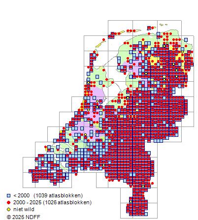 CC BY-NC-SA 3.0 NLVerspreidingNederlandVrij algemeen in Zuid-Limburg, in het oosten en midden van het land, in het rivierengebied en in de zuidelijke helft van Zeeland. Elders zeldzaam.