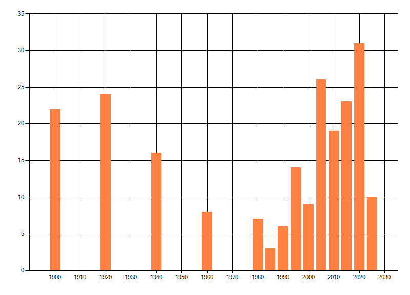 dus een trend in verspreiding kan hier niet direct uit worden afgelezen. Het opgegeven jaartal is het eerste jaar van de