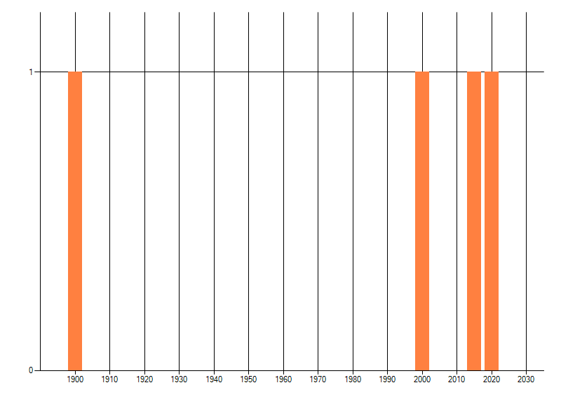 Het aantal atlasblokken (5x5 km) waarin de soort is gemeld binnen een periode van vijf jaar (vanaf 1980) of twintig jaar. Niet gecorrigeerd voor waarnemersinspanning en het aantal doorgegeven waarnemingen kan sterk variëren per periode, dus een trend in verspreiding kan hier niet direct uit worden afgelezen. Het opgegeven jaartal is het eerste jaar van de periode. Bron: gevalideerde waarnemingen uit de NDFF.