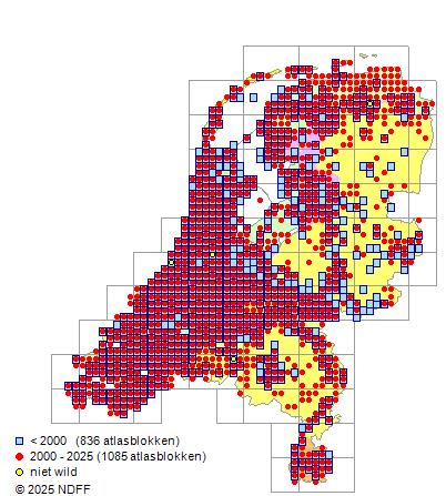 De trend is gecorrigeerd voor waarnemersinspanning en geeft de relatieve verandering in het aantal bezette kilometerhokken weer.