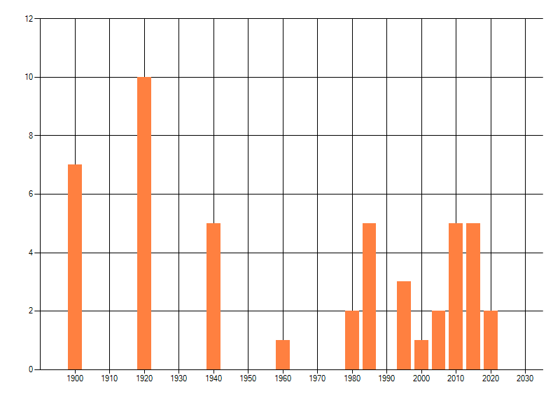 dus een trend in verspreiding kan hier niet direct uit worden afgelezen. Het opgegeven jaartal is het eerste jaar van de
