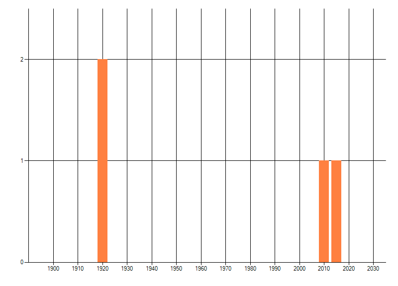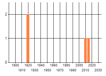 Het aantal atlasblokken (5x5 km) waarin de soort is gemeld binnen een periode van vijf jaar (vanaf 1980) of twintig jaar. Niet gecorrigeerd voor waarnemersinspanning en het aantal doorgegeven waarnemingen kan sterk variëren per periode, dus een trend in verspreiding kan hier niet direct uit worden afgelezen. Het opgegeven jaartal is het eerste jaar van de periode. Bron: gevalideerde waarnemingen uit de NDFF.