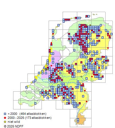 Bron: FLORON - Gemodelleerd op basis van waarnemingen uit de NDFF voor de periode 2000-2021.