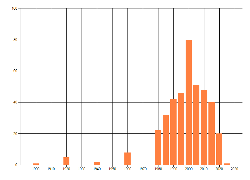 Het aantal atlasblokken (5x5 km) waarin de soort is gemeld binnen een periode van vijf jaar (vanaf 1980) of twintig jaar. Niet gecorrigeerd voor waarnemersinspanning en het aantal doorgegeven waarnemingen kan sterk variëren per periode, dus een trend in verspreiding kan hier niet direct uit worden afgelezen. Het opgegeven jaartal is het eerste jaar van de periode. Bron: gevalideerde waarnemingen uit de NDFF.