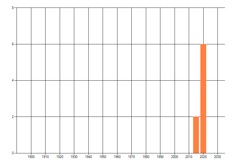 Het aantal atlasblokken (5x5 km) waarin de soort is gemeld binnen een periode van vijf jaar (vanaf 1980) of twintig jaar. Niet gecorrigeerd voor waarnemersinspanning en het aantal doorgegeven waarnemingen kan sterk variëren per periode, dus een trend in verspreiding kan hier niet direct uit worden afgelezen. Het opgegeven jaartal is het eerste jaar van de periode. Bron: gevalideerde waarnemingen uit de NDFF.