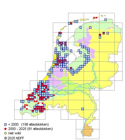 CC BY-NC-SA 3.0 NLVerspreidingNederlandPlaatselijk vrij algemeen in Noord- en Zuid-Holland en in Zeeland. Elders zeer zeldzaam.