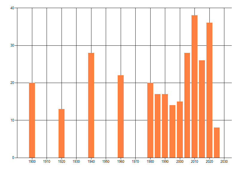 dus een trend in verspreiding kan hier niet direct uit worden afgelezen. Het opgegeven jaartal is het eerste jaar van de