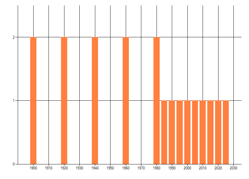 Het aantal atlasblokken (5x5 km) waarin de soort is gemeld binnen een periode van vijf jaar (vanaf 1980) of twintig jaar. Niet gecorrigeerd voor waarnemersinspanning en het aantal doorgegeven waarnemingen kan sterk variëren per periode, dus een trend in verspreiding kan hier niet direct uit worden afgelezen. Het opgegeven jaartal is het eerste jaar van de periode. Bron: gevalideerde waarnemingen uit de NDFF.