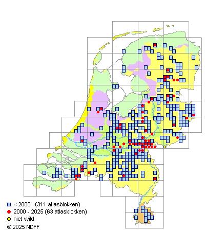 Bron: FLORON - Gemodelleerd op basis van waarnemingen uit de NDFF voor de periode 2000-2021.