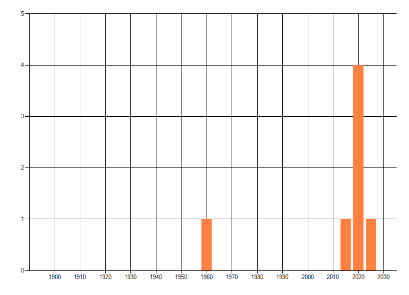 Het aantal atlasblokken (5x5 km) waarin de soort is gemeld binnen een periode van vijf jaar (vanaf 1980) of twintig jaar. Niet gecorrigeerd voor waarnemersinspanning en het aantal doorgegeven waarnemingen kan sterk variëren per periode, dus een trend in verspreiding kan hier niet direct uit worden afgelezen. Het opgegeven jaartal is het eerste jaar van de periode. Bron: gevalideerde waarnemingen uit de NDFF.