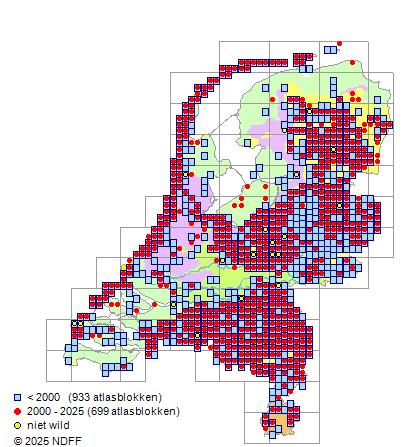 Bron: FLORON - Gemodelleerd op basis van waarnemingen uit de NDFF voor de periode 2000-2021.