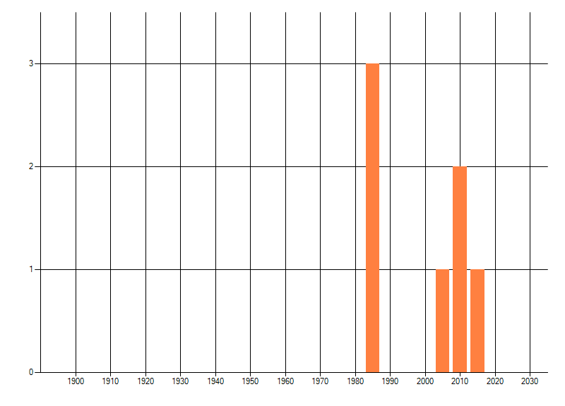 Het aantal atlasblokken (5x5 km) waarin de soort is gemeld binnen een periode van vijf jaar (vanaf 1980) of twintig jaar. Niet gecorrigeerd voor waarnemersinspanning en het aantal doorgegeven waarnemingen kan sterk variëren per periode, dus een trend in verspreiding kan hier niet direct uit worden afgelezen. Het opgegeven jaartal is het eerste jaar van de periode. Bron: gevalideerde waarnemingen uit de NDFF.