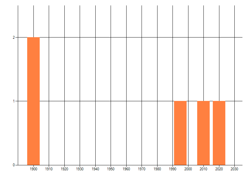 Het aantal atlasblokken (5x5 km) waarin de soort is gemeld binnen een periode van vijf jaar (vanaf 1980) of twintig jaar. Niet gecorrigeerd voor waarnemersinspanning en het aantal doorgegeven waarnemingen kan sterk variëren per periode, dus een trend in verspreiding kan hier niet direct uit worden afgelezen. Het opgegeven jaartal is het eerste jaar van de periode. Bron: gevalideerde waarnemingen uit de NDFF.