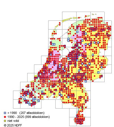 Bron: FLORON - Gemodelleerd op basis van waarnemingen uit de NDFF voor de periode 2000-2021.