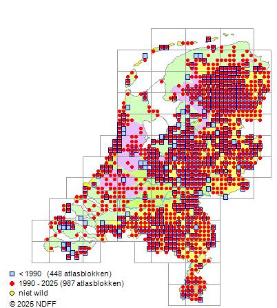 Bron: FLORON - Gemodelleerd op basis van waarnemingen uit de NDFF voor de periode 2000-2021.