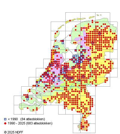 Bron: FLORON - Gemodelleerd op basis van waarnemingen uit de NDFF voor de periode 2000-2021.