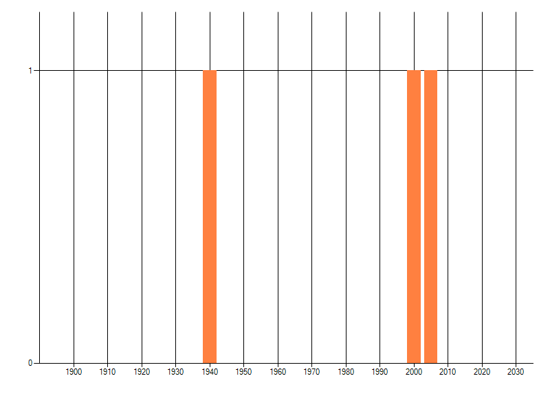 Het aantal atlasblokken (5x5 km) waarin de soort is gemeld binnen een periode van vijf jaar (vanaf 1980) of twintig jaar. Niet gecorrigeerd voor waarnemersinspanning en het aantal doorgegeven waarnemingen kan sterk variëren per periode, dus een trend in verspreiding kan hier niet direct uit worden afgelezen. Het opgegeven jaartal is het eerste jaar van de periode. Bron: gevalideerde waarnemingen uit de NDFF.