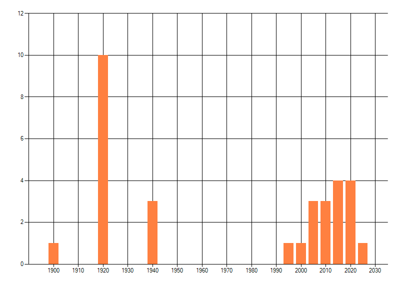 Het aantal atlasblokken (5x5 km) waarin de soort is gemeld binnen een periode van vijf jaar (vanaf 1980) of twintig jaar. Niet gecorrigeerd voor waarnemersinspanning en het aantal doorgegeven waarnemingen kan sterk variëren per periode, dus een trend in verspreiding kan hier niet direct uit worden afgelezen. Het opgegeven jaartal is het eerste jaar van de periode. Bron: gevalideerde waarnemingen uit de NDFF.