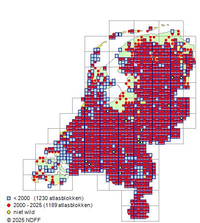 CC BY-NC-SA 3.0 NLVerspreidingNederlandVrij algemeen, maar zeldzaam in Zeeland, in de duinen, op de Veluwe, in zeekleigebieden en in Flevoland.