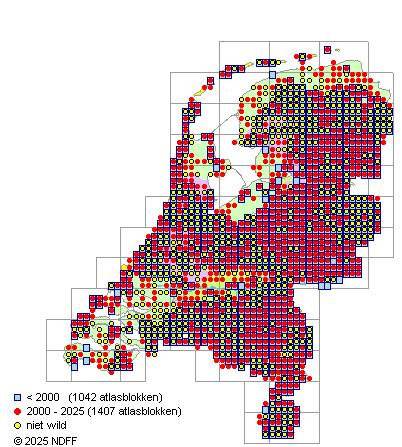 Bron: FLORON - Gemodelleerd op basis van waarnemingen uit de NDFF voor de periode 2000-2021.