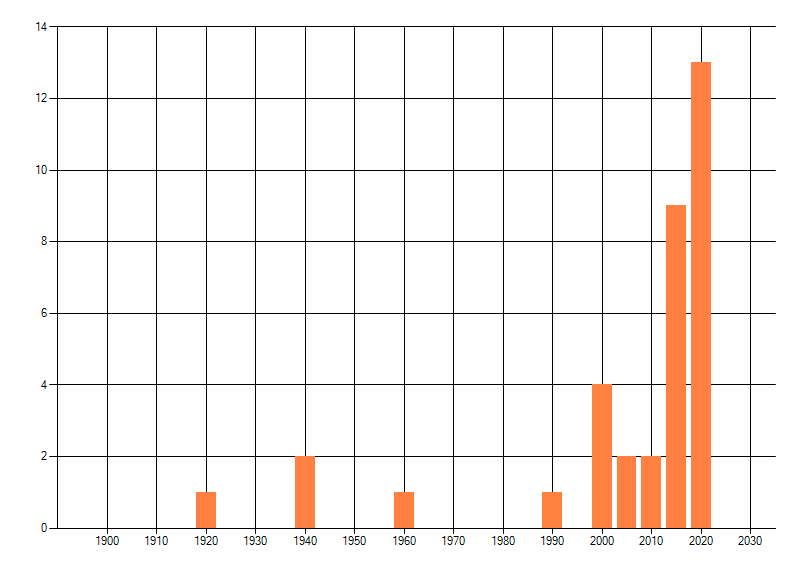 Het aantal atlasblokken (5x5 km) waarin de soort is gemeld binnen een periode van vijf jaar (vanaf 1980) of twintig jaar. Niet gecorrigeerd voor waarnemersinspanning en het aantal doorgegeven waarnemingen kan sterk variëren per periode, dus een trend in verspreiding kan hier niet direct uit worden afgelezen. Het opgegeven jaartal is het eerste jaar van de periode. Bron: gevalideerde waarnemingen uit de NDFF.