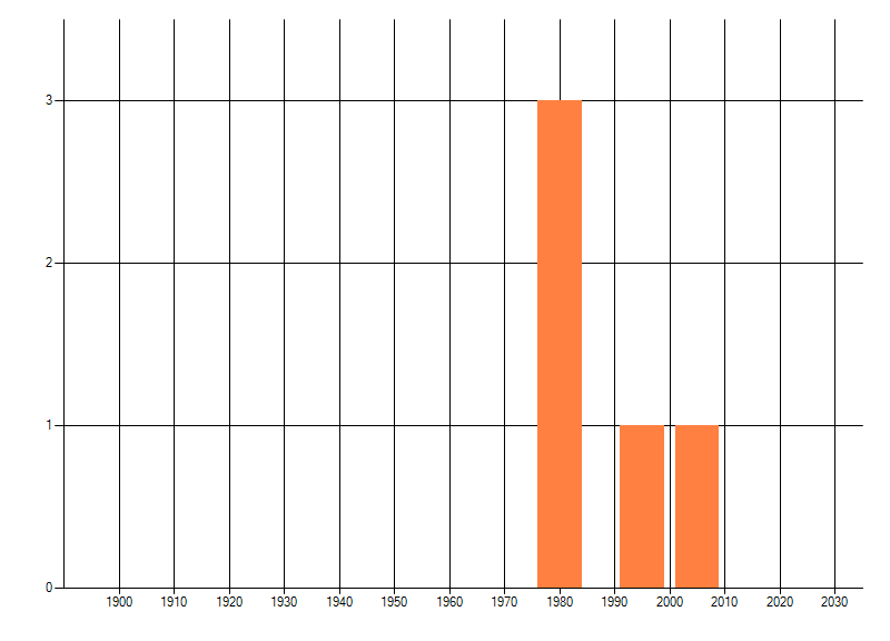 Het aantal atlasblokken (5x5 km) waarin de soort is gemeld binnen een periode van vijf jaar (vanaf 1980) of twintig jaar. Niet gecorrigeerd voor waarnemersinspanning en het aantal doorgegeven waarnemingen kan sterk variëren per periode, dus een trend in verspreiding kan hier niet direct uit worden afgelezen. Het opgegeven jaartal is het eerste jaar van de periode. Bron: gevalideerde waarnemingen uit de NDFF.