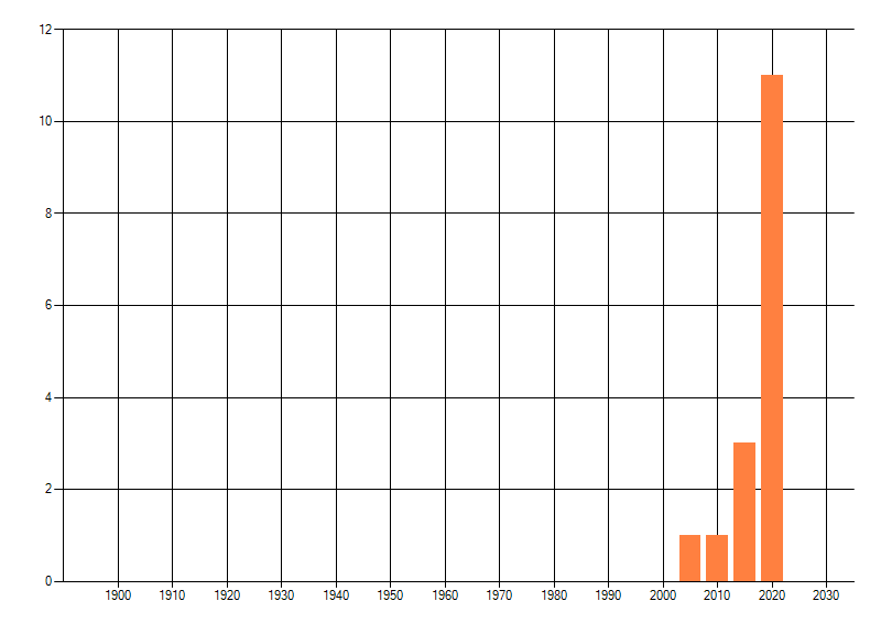 Het aantal atlasblokken (5x5 km) waarin de soort is gemeld binnen een periode van vijf jaar (vanaf 1980) of twintig jaar. Niet gecorrigeerd voor waarnemersinspanning en het aantal doorgegeven waarnemingen kan sterk variëren per periode, dus een trend in verspreiding kan hier niet direct uit worden afgelezen. Het opgegeven jaartal is het eerste jaar van de periode. Bron: gevalideerde waarnemingen uit de NDFF.