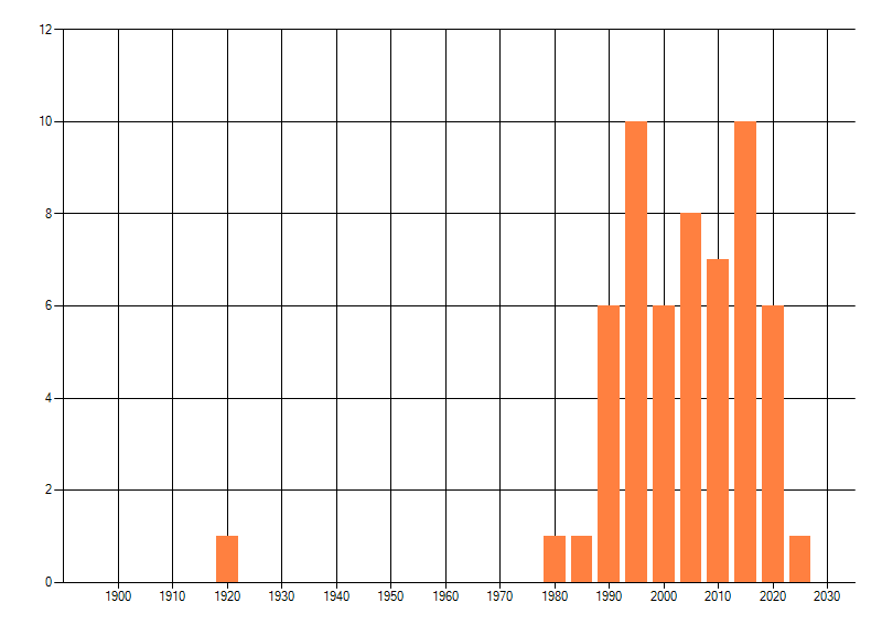 Het aantal atlasblokken (5x5 km) waarin de soort is gemeld binnen een periode van vijf jaar (vanaf 1980) of twintig jaar. Niet gecorrigeerd voor waarnemersinspanning en het aantal doorgegeven waarnemingen kan sterk variëren per periode, dus een trend in verspreiding kan hier niet direct uit worden afgelezen. Het opgegeven jaartal is het eerste jaar van de periode. Bron: gevalideerde waarnemingen uit de NDFF.