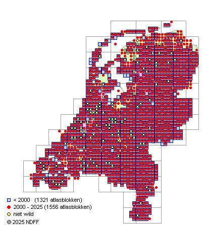 Bron: FLORON - Gemodelleerd op basis van waarnemingen uit de NDFF voor de periode 2000-2021.