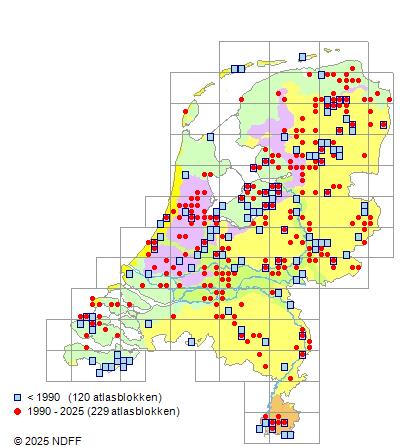 Volgens bestand NMV matig alg. in het hele land; vermoedelijk meer verbreid.
