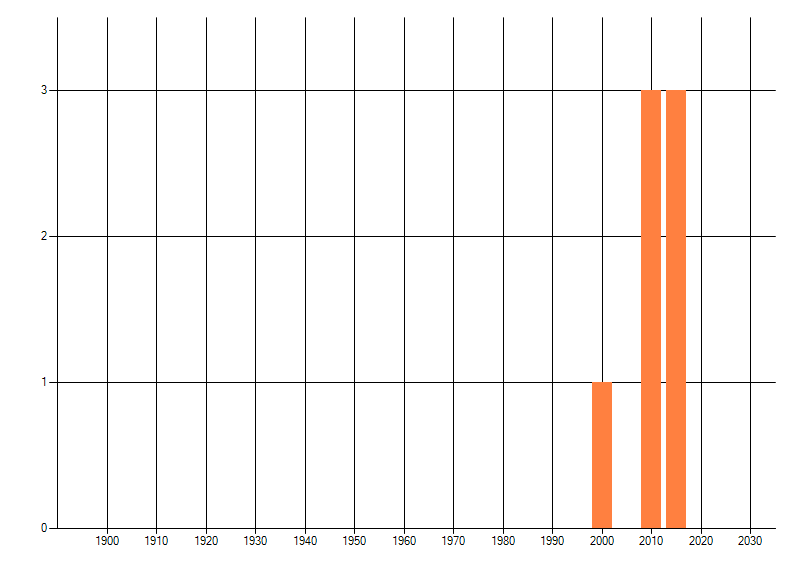 Het aantal atlasblokken (5x5 km) waarin de soort is gemeld binnen een periode van vijf jaar (vanaf 1980) of twintig jaar. Niet gecorrigeerd voor waarnemersinspanning en het aantal doorgegeven waarnemingen kan sterk variëren per periode, dus een trend in verspreiding kan hier niet direct uit worden afgelezen. Het opgegeven jaartal is het eerste jaar van de periode. Bron: gevalideerde waarnemingen uit de NDFF.