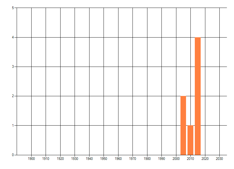 Het aantal atlasblokken (5x5 km) waarin de soort is gemeld binnen een periode van vijf jaar (vanaf 1980) of twintig jaar. Niet gecorrigeerd voor waarnemersinspanning en het aantal doorgegeven waarnemingen kan sterk variëren per periode, dus een trend in verspreiding kan hier niet direct uit worden afgelezen. Het opgegeven jaartal is het eerste jaar van de periode. Bron: gevalideerde waarnemingen uit de NDFF.