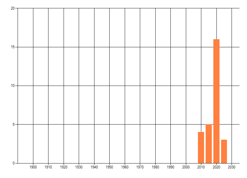 Het aantal atlasblokken (5x5 km) waarin de soort is gemeld binnen een periode van vijf jaar (vanaf 1980) of twintig jaar. Niet gecorrigeerd voor waarnemersinspanning en het aantal doorgegeven waarnemingen kan sterk variëren per periode, dus een trend in verspreiding kan hier niet direct uit worden afgelezen. Het opgegeven jaartal is het eerste jaar van de periode. Bron: gevalideerde waarnemingen uit de NDFF.