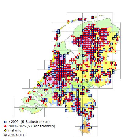 Bron: FLORON - Gemodelleerd op basis van waarnemingen uit de NDFF voor de periode 2000-2021.