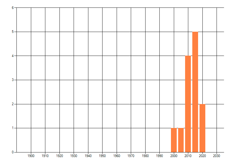 Het aantal atlasblokken (5x5 km) waarin de soort is gemeld binnen een periode van vijf jaar (vanaf 1980) of twintig jaar. Niet gecorrigeerd voor waarnemersinspanning en het aantal doorgegeven waarnemingen kan sterk variëren per periode, dus een trend in verspreiding kan hier niet direct uit worden afgelezen. Het opgegeven jaartal is het eerste jaar van de periode. Bron: gevalideerde waarnemingen uit de NDFF.