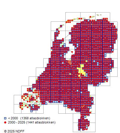 Bron: FLORON - Gemodelleerd op basis van waarnemingen uit de NDFF voor de periode 2000-2021.