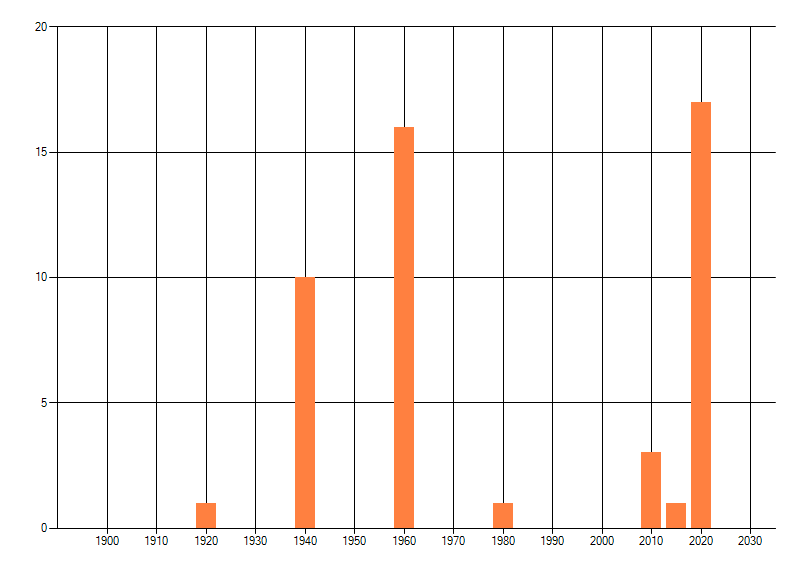 Het aantal atlasblokken (5x5 km) waarin de soort is gemeld binnen een periode van vijf jaar (vanaf 1980) of twintig jaar. Niet gecorrigeerd voor waarnemersinspanning en het aantal doorgegeven waarnemingen kan sterk variëren per periode, dus een trend in verspreiding kan hier niet direct uit worden afgelezen. Het opgegeven jaartal is het eerste jaar van de periode. Bron: gevalideerde waarnemingen uit de NDFF.