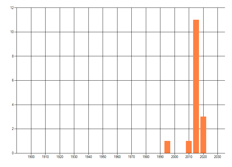 Het aantal atlasblokken (5x5 km) waarin de soort is gemeld binnen een periode van vijf jaar (vanaf 1980) of twintig jaar. Niet gecorrigeerd voor waarnemersinspanning en het aantal doorgegeven waarnemingen kan sterk variëren per periode, dus een trend in verspreiding kan hier niet direct uit worden afgelezen. Het opgegeven jaartal is het eerste jaar van de periode. Bron: gevalideerde waarnemingen uit de NDFF.