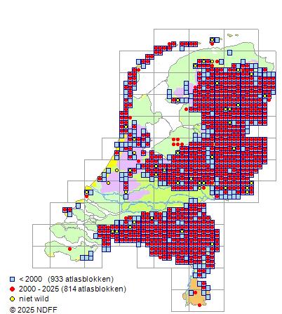 Bron: FLORON - Gemodelleerd op basis van waarnemingen uit de NDFF voor de periode 2000-2021.