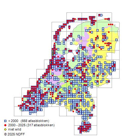 Bron: FLORON - Gemodelleerd op basis van waarnemingen uit de NDFF voor de periode 2000-2021.