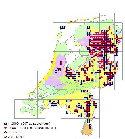 Bron: FLORON - Gemodelleerd op basis van waarnemingen uit de NDFF voor de periode 2000-2021.