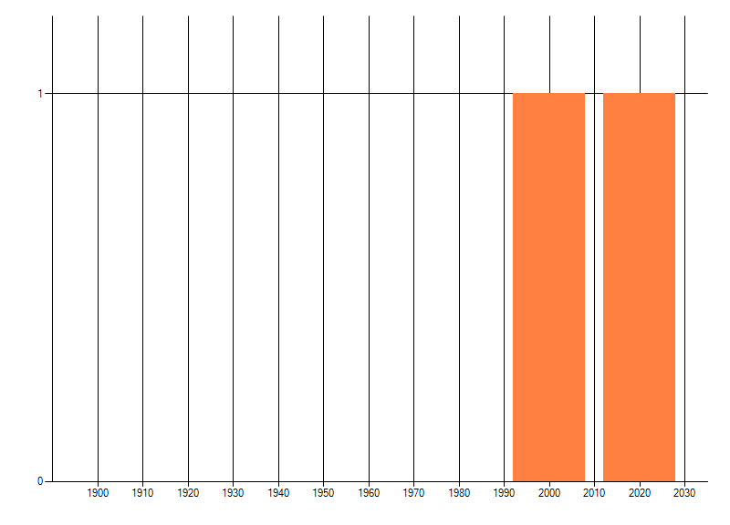 Het aantal atlasblokken (5x5 km) waarin de soort is gemeld binnen een periode van vijf jaar (vanaf 1980) of twintig jaar. Niet gecorrigeerd voor waarnemersinspanning en het aantal doorgegeven waarnemingen kan sterk variëren per periode, dus een trend in verspreiding kan hier niet direct uit worden afgelezen. Het opgegeven jaartal is het eerste jaar van de periode. Bron: gevalideerde waarnemingen uit de NDFF.