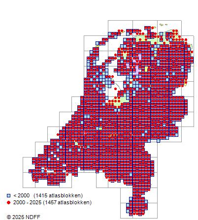 CC BY-NC-SA 3.0 NLVerspreidingNederlandAlgemeen, maar vrij zeldzaam in het noordoosten en zeldzaam in het noordelijk zeekleigebied.