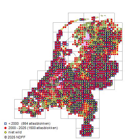 CC BY-NC-SA 3.0 NLVerspreidingNederlandAlgemeen in de Hollandse en Zeeuwse duinen, vrij algemeen in Zuid-Limburg en in het rivierengebied, vrij zeldzaam in Drenthe, Twente, de Achterhoek en Noord-Brabant en zeldzaam in Zeeland, in laagveengebieden en in het noordelijk zeekleigebied.