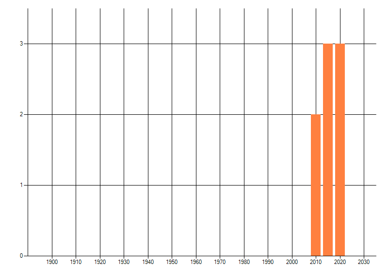 Het aantal atlasblokken (5x5 km) waarin de soort is gemeld binnen een periode van vijf jaar (vanaf 1980) of twintig jaar. Niet gecorrigeerd voor waarnemersinspanning en het aantal doorgegeven waarnemingen kan sterk variëren per periode, dus een trend in verspreiding kan hier niet direct uit worden afgelezen. Het opgegeven jaartal is het eerste jaar van de periode. Bron: gevalideerde waarnemingen uit de NDFF.