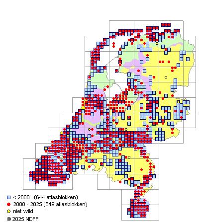 Bron: FLORON - Gemodelleerd op basis van waarnemingen uit de NDFF voor de periode 2000-2021.